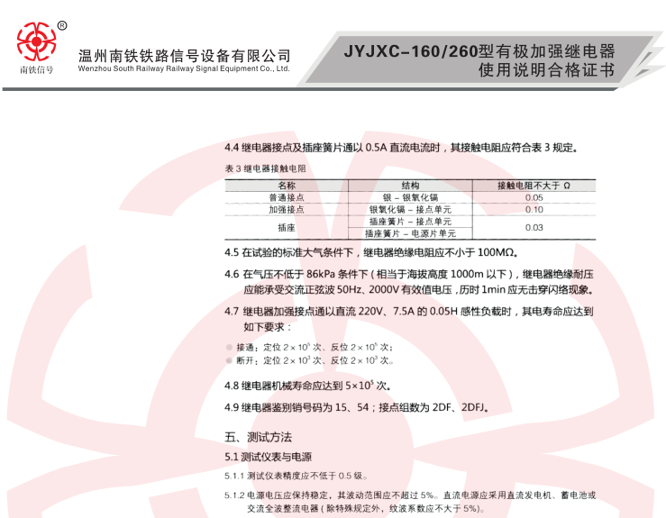 JYJXC-160/260有極加強繼電器在信號電路中用于單線自動閉塞改變運行方向電路中的方向繼電器。