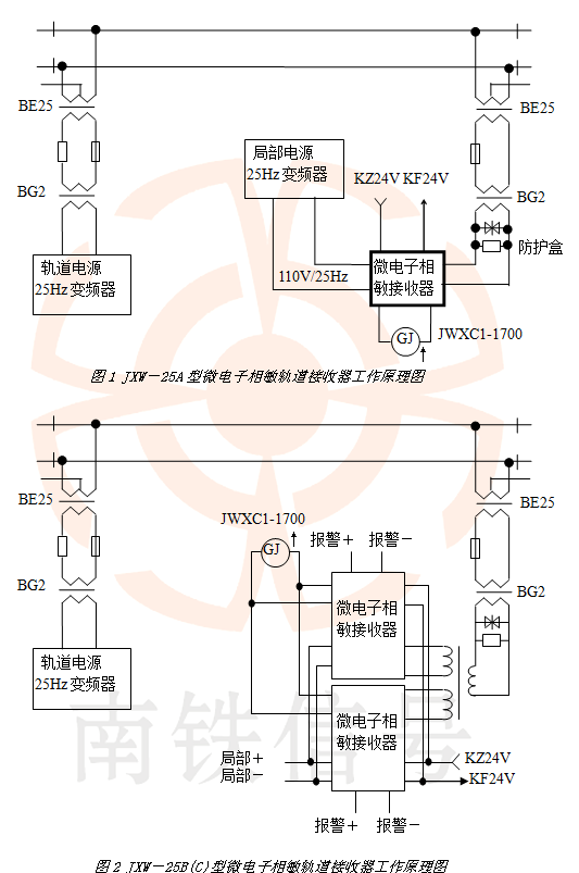 JXW25型微電子相敏軌道電路接收器以微處理機(jī)為基礎(chǔ),采用數(shù)字處理技術(shù)對軌道電路信息進(jìn)行分析、檢出有用信息,除去干擾,完成電化區(qū)段25Hz相敏軌道電路接收功能。